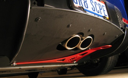 14. BEFORE tightening hanger bolts, position new exhaust at center point of car. I test fitted the Diffuser panel to make sure it is lined up properly.